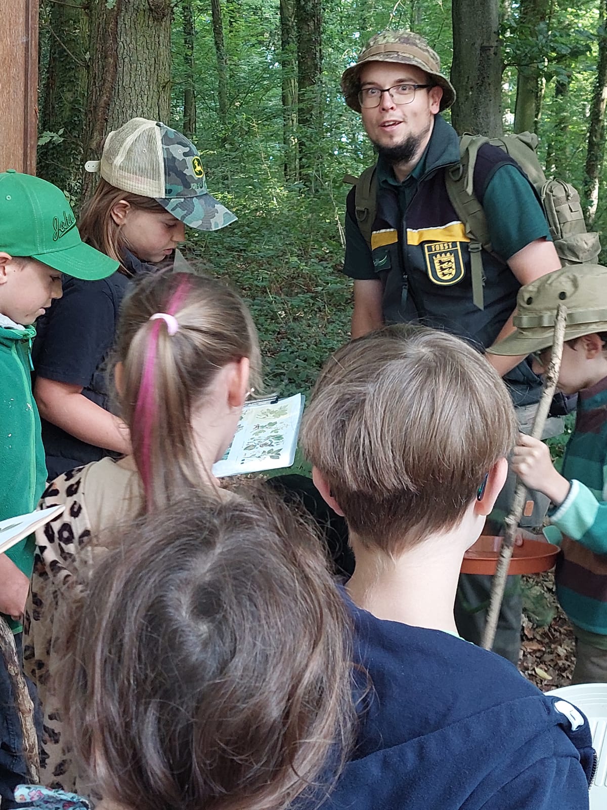 Bei bestem Spätsommerwetter haben sich am Samstag, den 6. September neun Kinder zur Ferienprogramm-Veranstaltung des NABU Kraichtal getroffen. Hanne und Thomas Bratzel sowie Walter Batzler vom NABU führten die jungen Naturforscher vier Stunden lang durch Wald und Flur. Im Wald wurden Spuren von verschiedenen Wildtieren wie Wildschwein, Reh, Dachs, usw. entdeckt. Mit Hilfe von Becher-Lupen konnten zahlreiche Insekten und Spinnen beobachtet und bestimmt werden. Auch Pilze und Pflanzen am Wegesrand fanden viel Beachtung.
